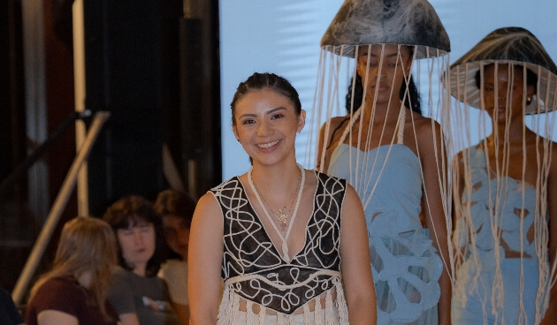 Con una trayectoria que combina formación internacional, desde el Istituto Marangoni, Condé Nast College Spain, hasta Vogue College of Fashion Spain y ELLE Education, Andrée presentó una propuesta fresca que mezcla tradición guatemalteca, innovación en transparencias, materiales orgánicos y un profundo respeto por la naturaleza.