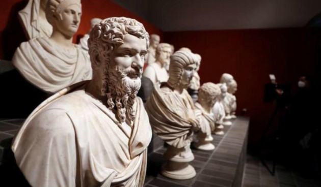 Bustos de emperadores romanos, sarcófagos adornados y un antiguo relieve griego tallado hace 2.500 años son sólo algunas de las 92 piezas que se exhiben en el Palazzo Caffarelli de la capital italiana.