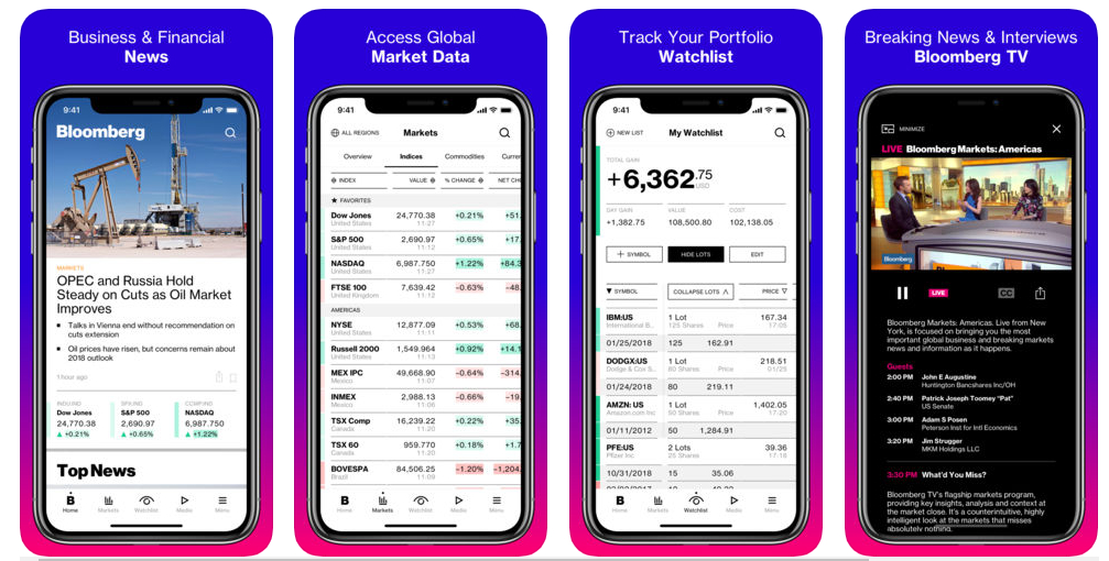 Bloomberg es una aplicación gratuita para iPad y Android que ofrece noticias internacionales para inversores, últimos datos de los índices bursátiles, bonos, futuros o divisas.