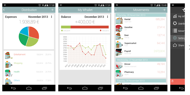 También avisa de los gastos e ingresos y lo más interesante es que podrás exportar todos los datos a Excel, Word, Google Docs, Archivo de texto y a PDF.