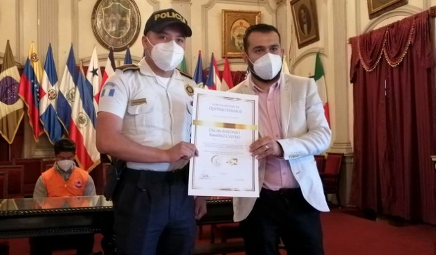 En el interior del salón de Honores de la municipalidad de Quetzaltenango, autoridades locales entregaron reconocimiento a los héroes que arriesgaron su integridad física el pasado 20 de noviembre, tras un incendio ocurrido en un comercio funcionaba como cohetería.