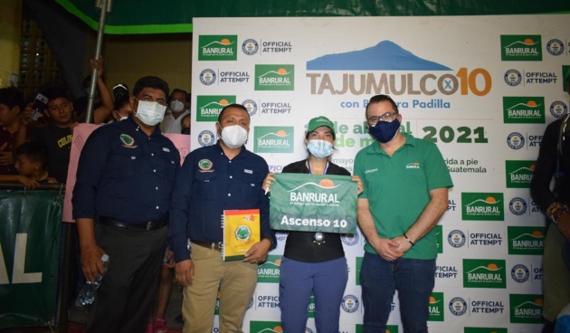 El Banco de Desarrollo Rural, S.A. -BANRURAL se siente orgulloso en ser el patrocinador oficial del intento de récord de Guinness World Records para el reto que ha realizado Bárbara Padilla, atleta y alpinista nacional, quien busca ser la primera persona en establecer la marca de la mayor distancia vertical recorrida a pie en un mes (ascensos y descensos), en el denominado Reto Tajumulco X 10.