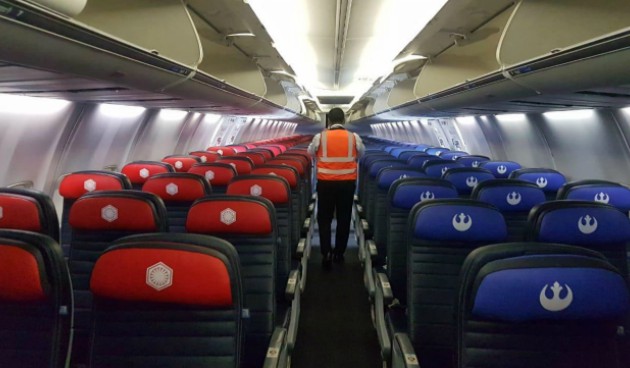 Los pasajeros tendrán un kit con recuerdos de la película, además, la aerolínea presentará los vídeos de seguridad acompañados con algunos de los personajes emblemáticos y regalará los sables emblemáticos.