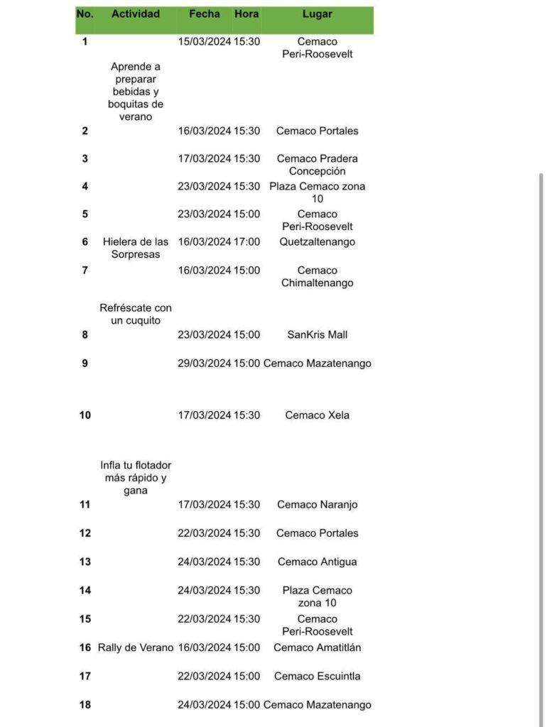 Es así, que CEMACO en tiendas ubicadas en Guatemala, Escuintla, Mazatenango, Chimaltenango, Antigua Guatemala y Quetzaltenango, ha preparado una serie de eventos en los que los guatemaltecos pueden participar. En estos espacios podrán aprender a preparar cocteles, boquitas, degustar de postres refrescantes y participar en concursos.