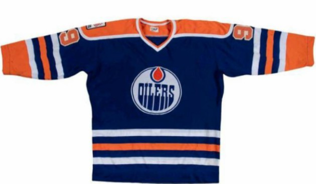 La camiseta firmada que Gretzky usó en la temporada 1979-80 con los Edmonton Oilers de la Liga Nacional de Hockey es uno de los principales artículos, con un precio estimado de venta de 450.000 a 600.000 dólares.