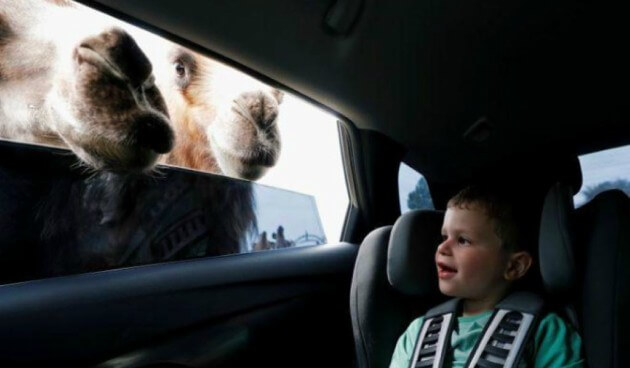 Los camellos asomaban la cabeza por las ventanillas de los autos en busca de palitos de zanahoria. Las jirafas y los elefantes también se acercaban para recibir vegetales.