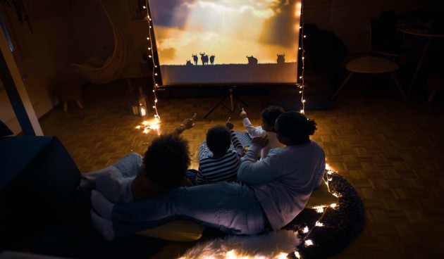 Ojo, ya sea en el interior o exterior, si tu sala está en completa oscuridad, tus invitados tendrán dificultades para encontrar las bebidas y la botana. Por esa razón, te aconsejamos mantener fuentes de luz en la parte posterior de tu sala para evitar que no deslumbre la imagen de la pantalla.
