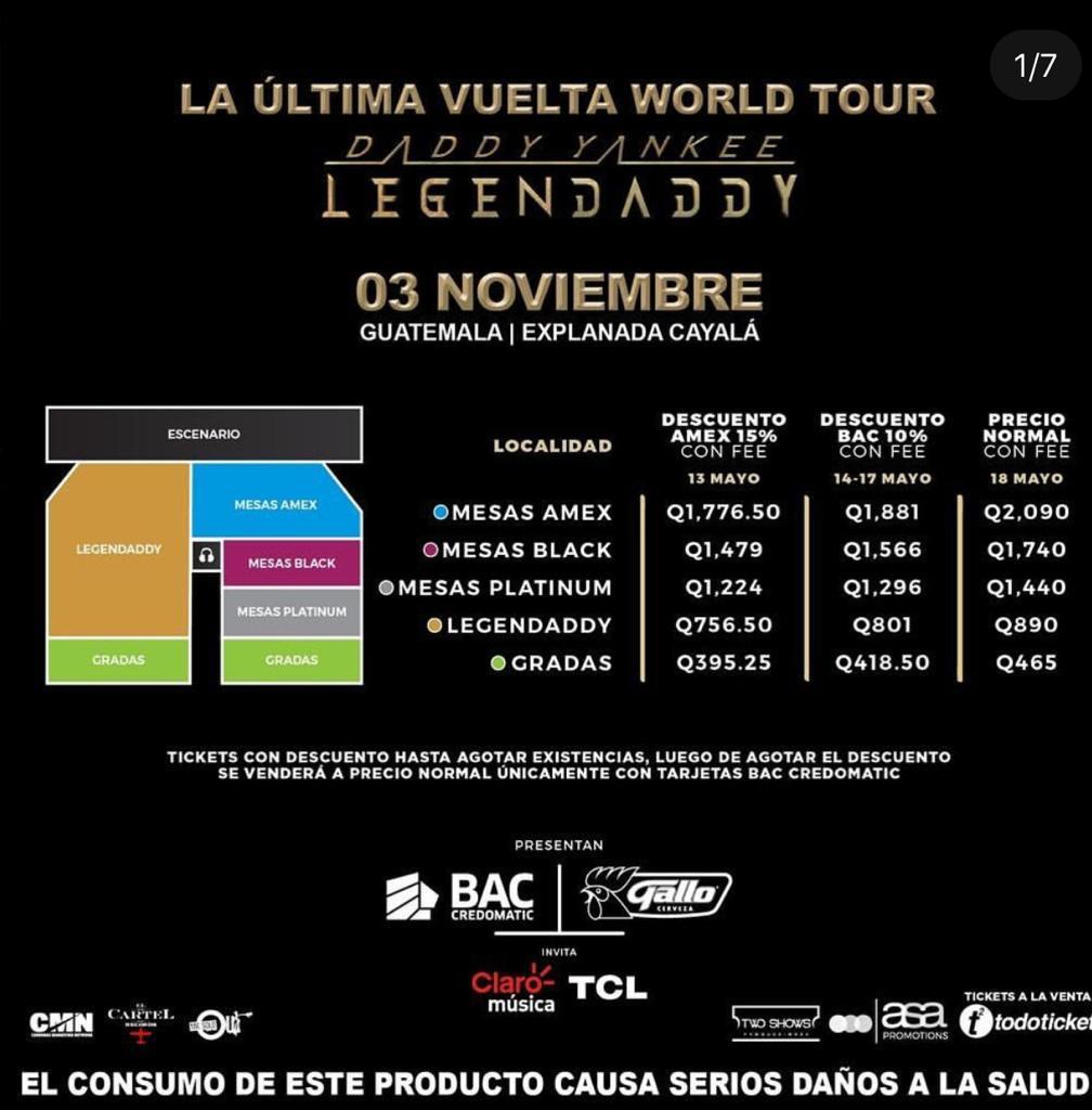 De acuerdo con la información publicada por TodoTicket, las entradas para el concierto de Daddy Yankee en Guatemala se venderán en tres diferentes fechas debido a que, cada una contará con beneficios.