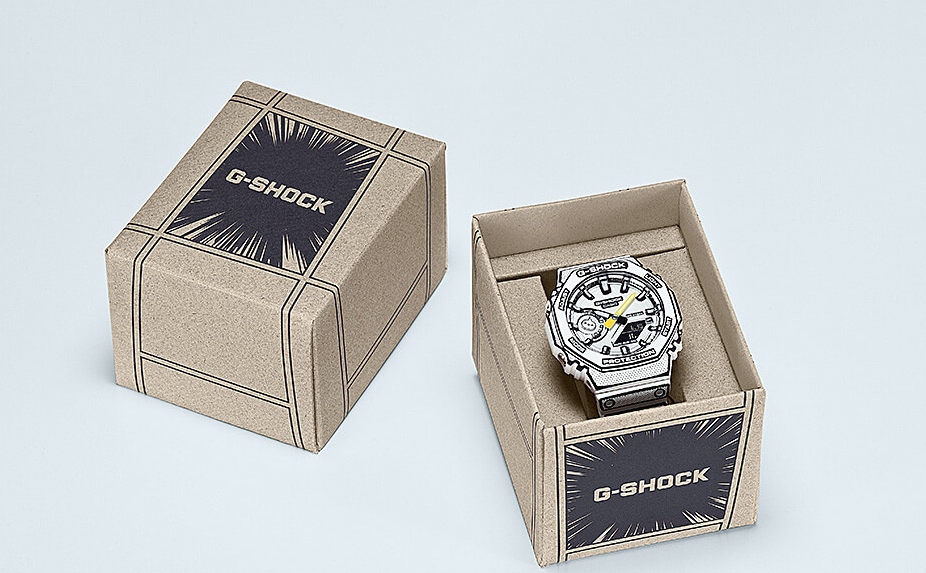 El GA-2100MNG-2A en azul cielo y el GA-2100MNG-7A en color blanco clásico, son mucho más que solo relojes; son un tributo a la pasión por el manga y los videojuegos. Con su diseño inspirado en las técnicas visuales del cómic japonés, este reloj conecta emocionalmente con aquellos que han crecido inmersos en estos mundos. Desde el detalle en la correa hasta la onomatopeya grabada en la tapa trasera, cada aspecto está pensado para aquellos que ven en el manga y los videojuegos más que simples pasatiempos: ven un reflejo de su propia historia y creatividad.