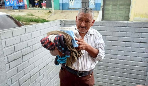 El personal de la Policía Nacional Civil le donó alimentos, ropa, zapatos y productos de aseo personal al señor Aroche, regalándole un día completamente diferente.