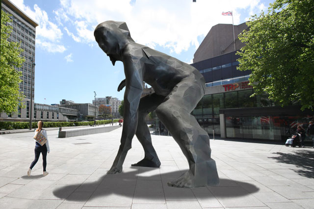 La figura, titulada “Mensajero”, fue creada por el escultor Joseph Hillier, de 44 años, como parte de un proyecto de recuperación de la ciudad del suroeste de Inglaterra.