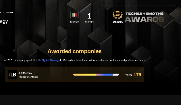 ILB Metrics acaba de ser reconocida entre el 3.5% de las mejores empresas digitales del planeta. La consultora fundada en Guatemala en 2019, recibió los TechBehemoths Awards 2025 en tres categorías: Content Marketing, Digital Strategy y SEO, compitiendo contra más de 54,000 empresas de 68 países.