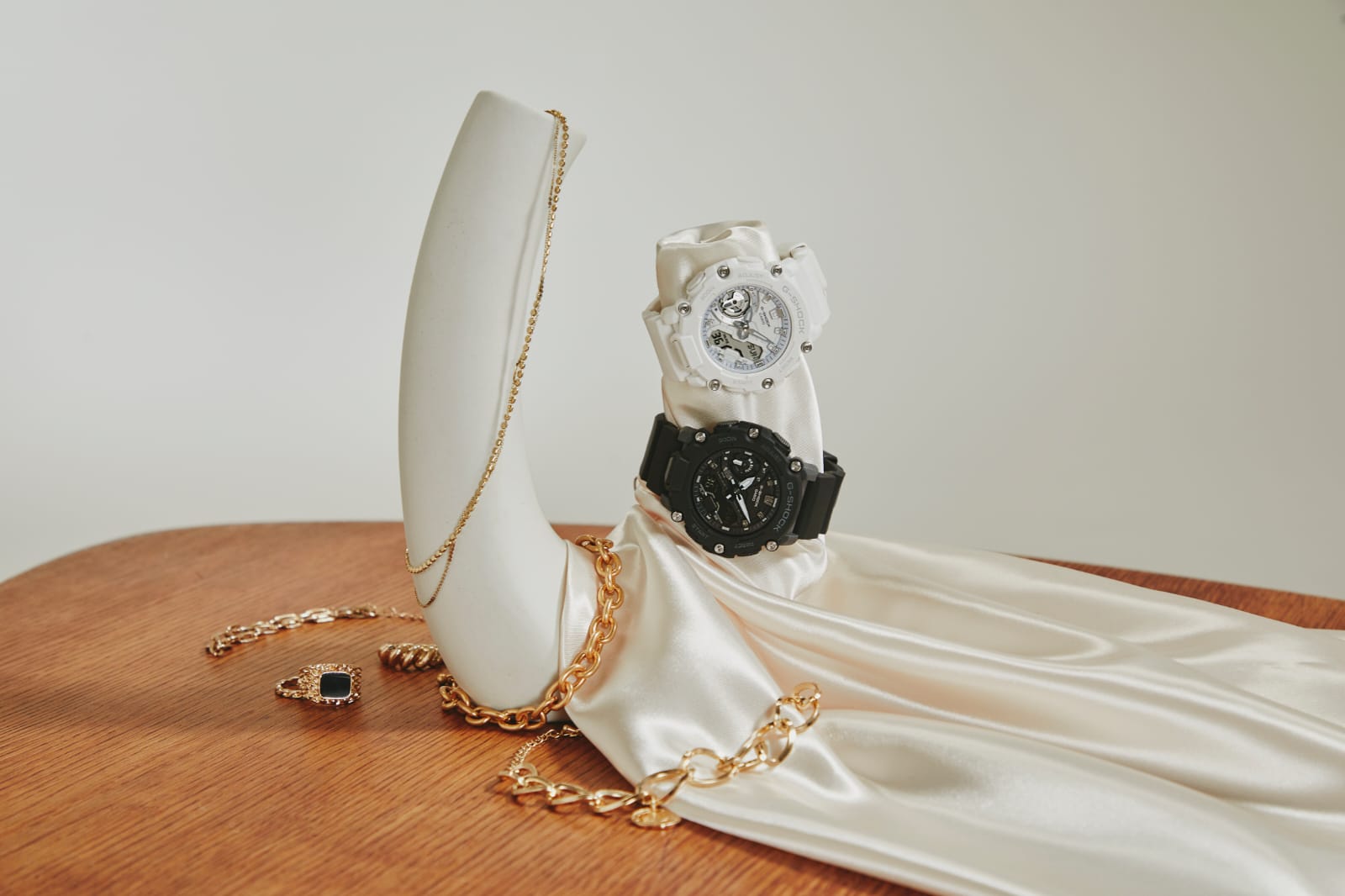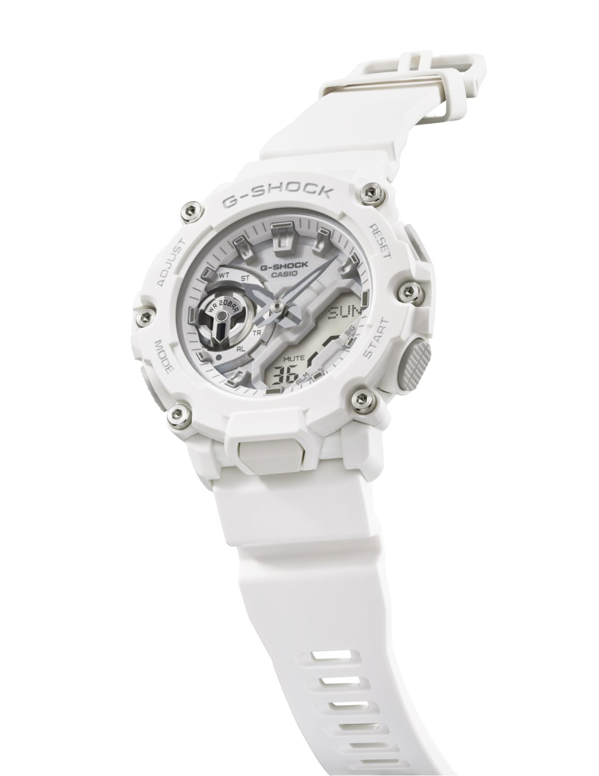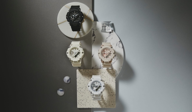 El reloj mide 48,3 x 45,7 x 12,1 milímetros y pesa 46 gramos. Los modelos GMA-S2200 cuentan con un revestimiento de deposición de vapor en los marcadores y en la subesfera para conseguir un aspecto metálico. Los modelos de lanzamiento son el GMA-S2200-1A negro, el GMA-S2200-7A crema, el GMA-S2200M-4A rosa y el GMA-S2200M-7A blanco, siempre siguiendo las útlimas tendencias de color y diseño. La moda urbana al aire libre se combina con esquemas de colores monocromáticos sutiles y un diseño sobresaliente. Los componentes del reloj en diferentes tonos y texturas se unen en un diseño de tono sobre tono con una profundidad y dimensión inesperadas.