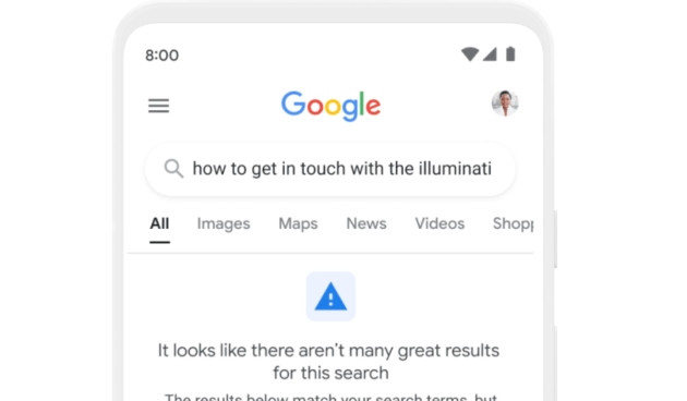 - Cuando la información que estás buscando aún no está ampliamente disponible, la Búsqueda de Google muestra automáticamente un aviso en los resultados que indica que puede tomar tiempo para que una serie de fuentes publiquen información sobre un tema.