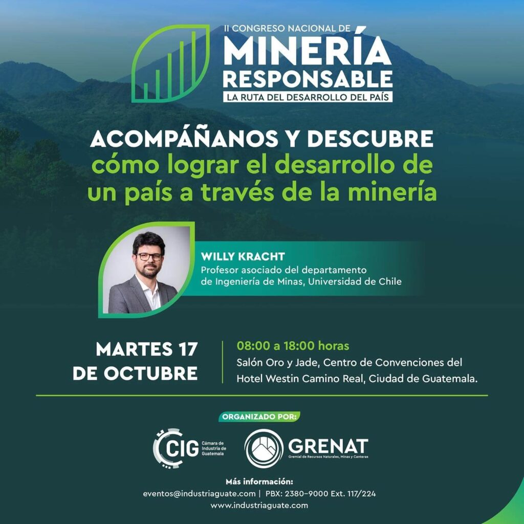 En esta edición la conferencia principal será sobre el caso de éxito de Chile, un país minero que ha logrado basar su economía y su desarrollo a través del aprovechamiento responsable de sus recursos naturales. Willy Kratch, actual profesor de Ingeniería de Minas en la Universidad de Chile y ex subsecretario de minería (2022-2023) compartirá con la audiencia recomendaciones para capitalizar el potencial minero de Guatemala a través del modelo de Minería Responsable.