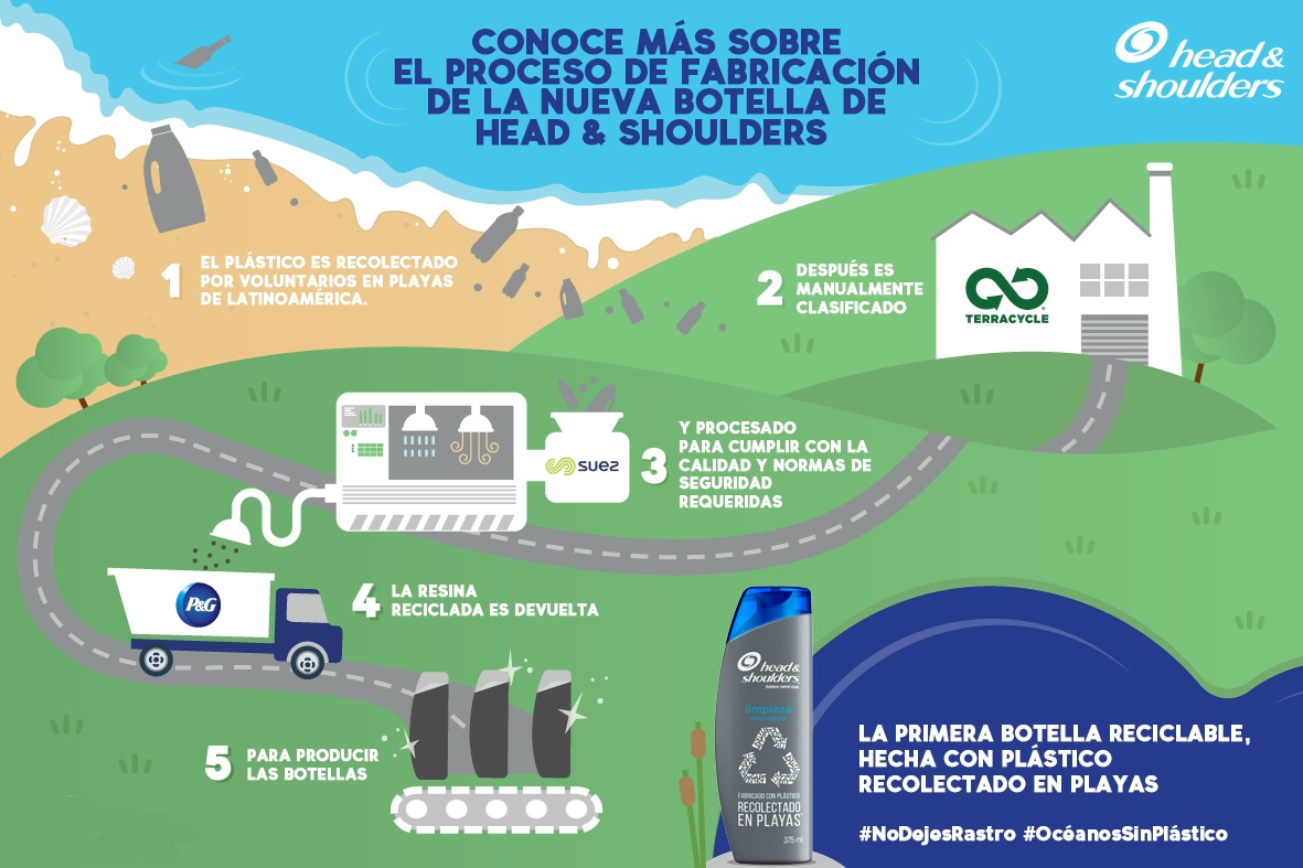 El compromiso de Head & Shoulders de P&G incluye aumentar progresivamente la cantidad de plástico post-consumo reciclado (PCR) en su portafolio. Para fines del año 2019, alrededor de 4 millones de botellas tendrán hasta un 25% de plástico PCR. Además, la marca incentiva a las personas a reciclar las botellas de Head & Shoulders ya que al hacerlo estarán impidiendo que 30 gramos de plástico entren en nuestros océanos y mares.