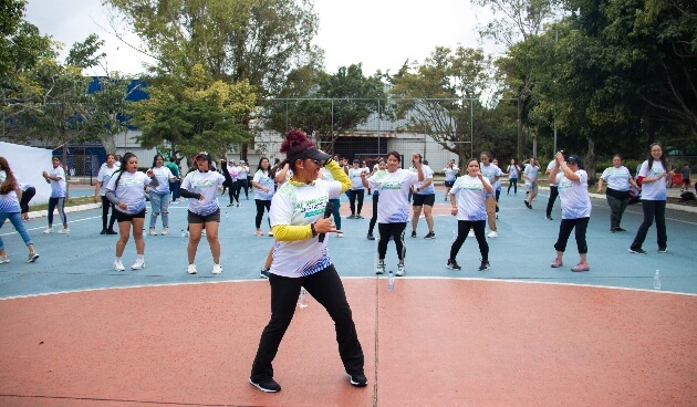 La actividad comenzó a las 8:30 de la mañana en el Parque Erick Barrondo, iniciando con una clase de aeróbicos, seguida de una sesión de zumba. A pesar de la lluvia, los participantes bailaron y disfrutaron de los beneficios de la actividad física, como la activación de los sistemas circulatorio, respiratorio y cardíaco, guiados por la instructora de baile latino, Seily Méndez.