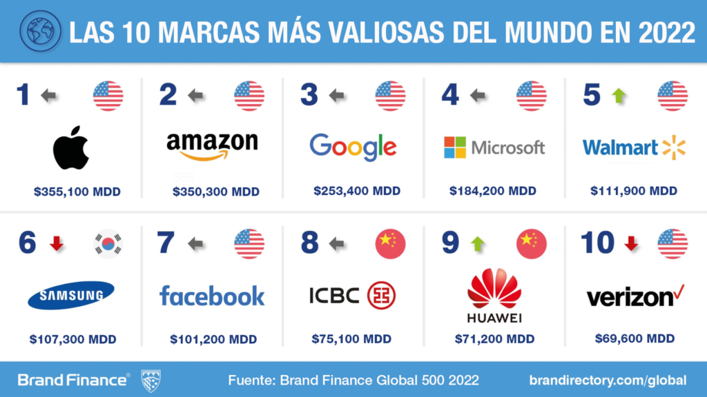 En conjunto, la industria de la tecnología se convierte de nuevo en la más valiosa, con un valor de marca acumulado cercano a los 1.3 billones de dólares en la clasificación Brand Finance Global 500. Un total de 50 marcas tecnológicas figuran en la clasificación, y las principales empresas como Apple, Microsoft y Samsung, aportan una parte importante del valor total del sector.