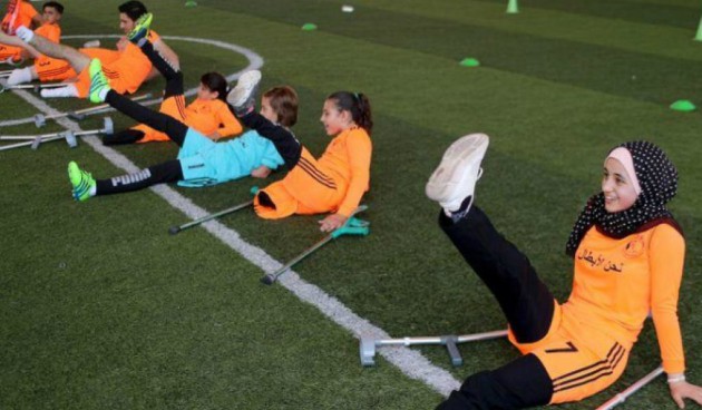 Su entrenador dijo que algunos de los 26 jugadores perdieron extremidades por ofensivas israelíes en Gaza, donde el gobernante grupo miliciano islámico Hamas y el Estado hebreo han librado tres guerras desde 2008.
