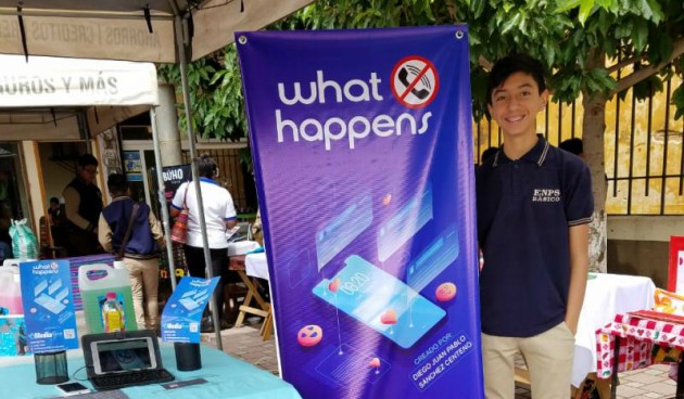 Un día tuvo la idea de crear esta aplicación, debido a que no tenía teléfono solo tablet y necesitaba comunicarse. Sin haber recibido un curso de creación de apps, buscó en Internet cómo realizar una y encontró una página que permitía crearla en diferentes estilos; así que empezó a trabajarla y la llamó What Happen.
