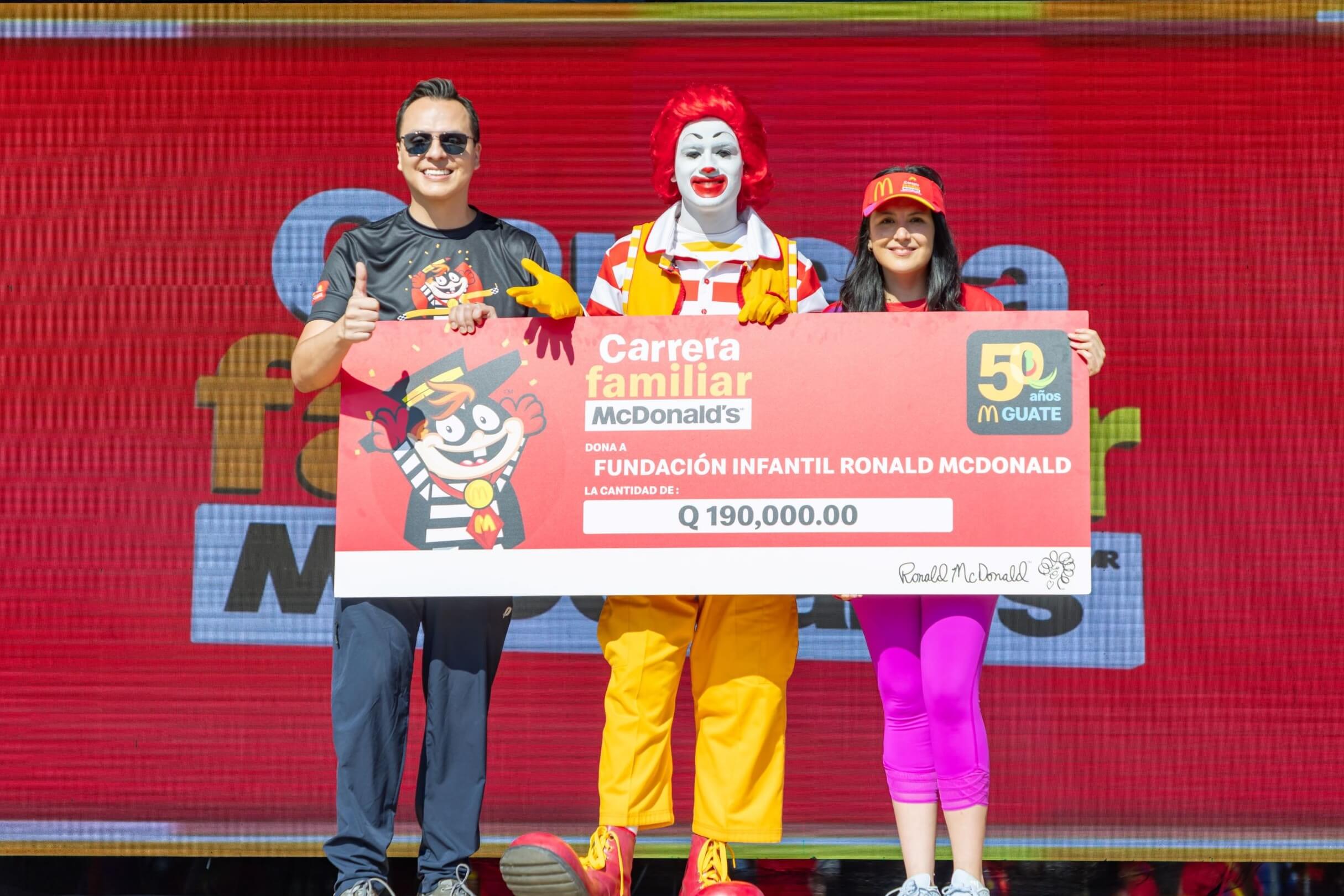 Además del beneficio para la salud, para McDonald’s es importante generar un impacto positivo en la comunidad, por lo que a través del pilar “Conexión con la Comunidad” de su plataforma de marca “Pequeñas Acciones Grandes Cambios”, en la Ciudad de Guatemala se entregó un donativo de Q190,000.00 a la Fundación Infantil Ronald McDonald para el mantenimiento de las “Casas Ronald McDonald” que son un hogar lejos del hogar para familias del interior de país que tienen que viajar a la Capital para que sus hijos reciban tratamiento médico.