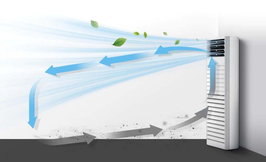Posee el sistema patentado Clean Booster que suministra aire limpio hasta un 24% más rápido con un alcance de 7.5 metros alrededor de donde se ubique. Con su filtro Safe Plus, remueve el 99.9% de bacterias y virus, elimina polvo de gran tamaño o polvo ultrafino (ácaros, moho). El filtro de desodorización elimina gases nocivos, malos olores y contaminantes del aire.