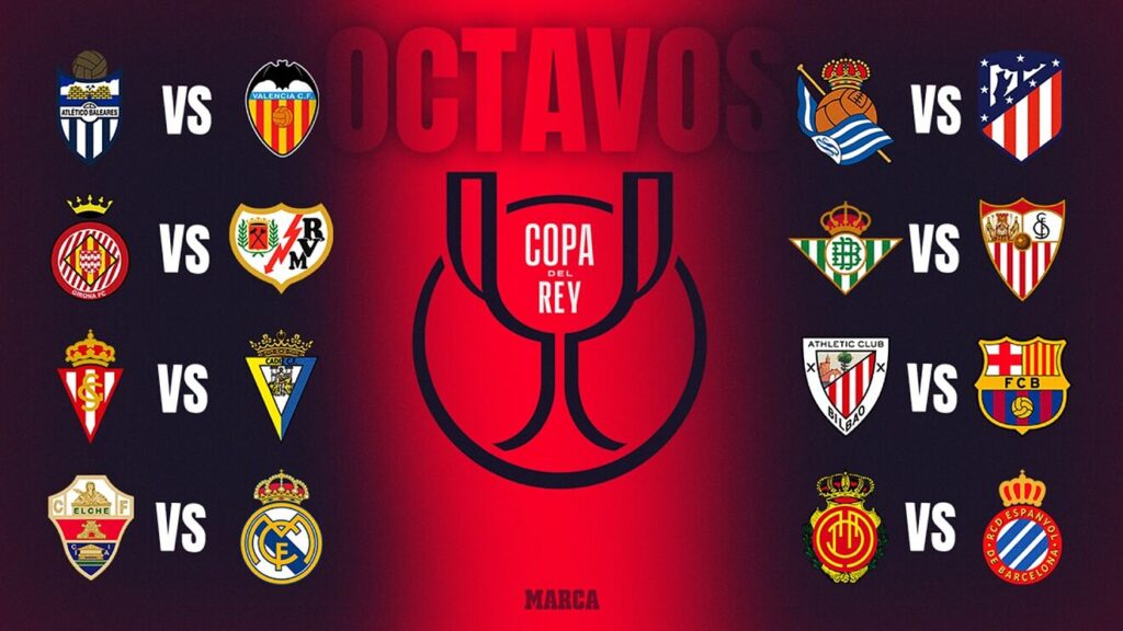 El próximo fin de semana, 15 y 16 de enero, se celebrarán cinco de los ocho encuentros de esta ronda de octavos de final. El Elche-Real Madrid, Real Sociedad-Atlético y Athletic-Barcelona se celebrarán el 19 y el 20 de enero debido a la Supercopa de España de la próxima semana, donde en la Final Four se miden Barça y Real Madrid y Athletic y Atlético.