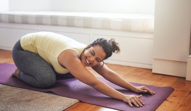 ¿Cómo se hace? Junta las manos a la altura de la espalda baja. Siéntate o párate de forma erguida mientras inhalas. Levanta los brazos hasta que se junten los omóplatos. Exhala.