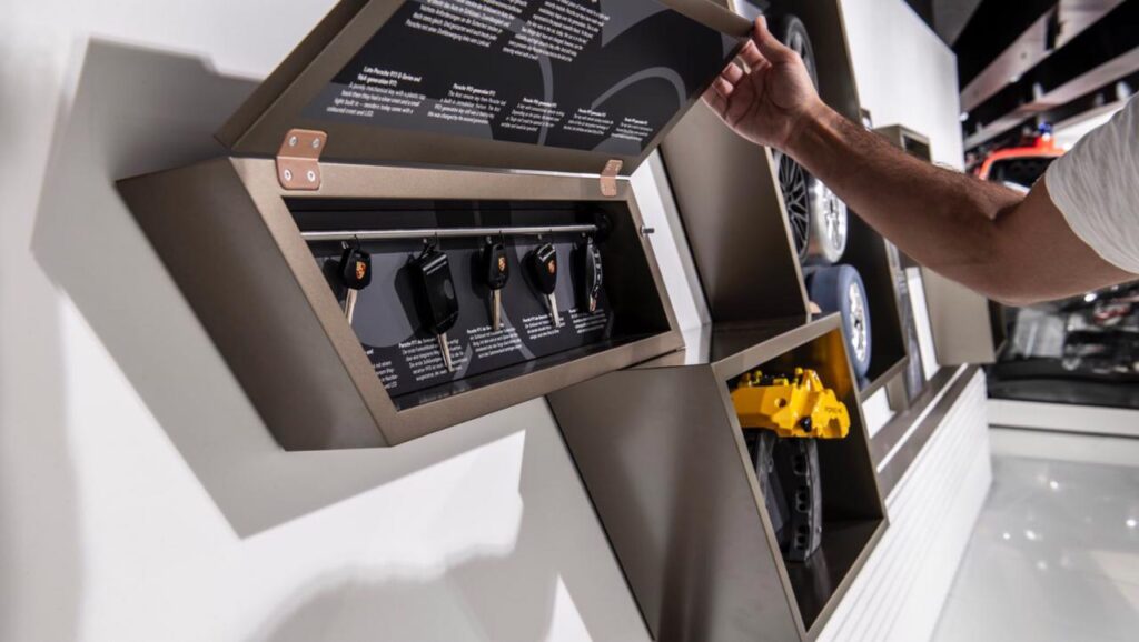 Los visitantes también pueden conocer el modelo de funcionamiento de Weissach por medio de iPads y software de realidad aumentada. De igual forma, pueden interactuar en otros puntos de esta exposición especial. Por ejemplo, hay partes de la misma con modelos y objetos impresos en 3D, así como unas aletas mecánicas detrás de las que se ofrece interesante información sobre el Centro de Desarrollo.