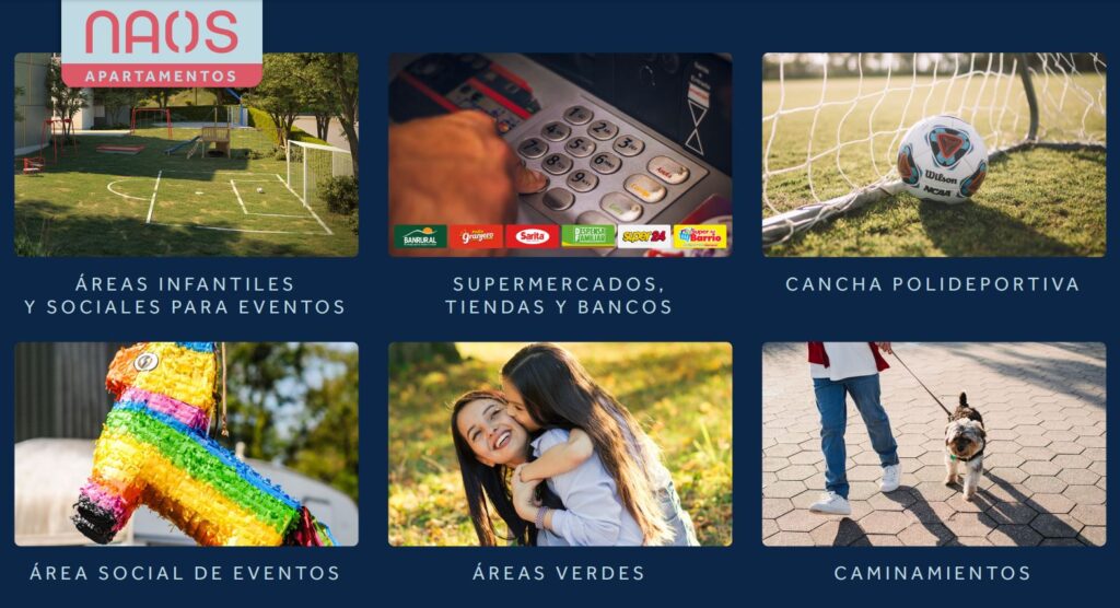 Este complejo habitacional contará con 8 torres de seis niveles cada torre, para un total de 192 apartamentos. Algunas de las amenidades que tendrá Naos Apartamentos son: