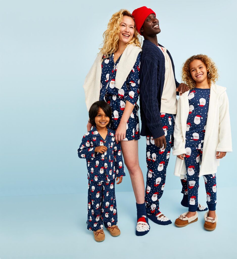 - Jingle Jammies (pijamas navideños) en estampados de cuadros, patrones divertidos y festivos para la temporada. Perfectos para descansar en casa y combinarse con toda la familia.