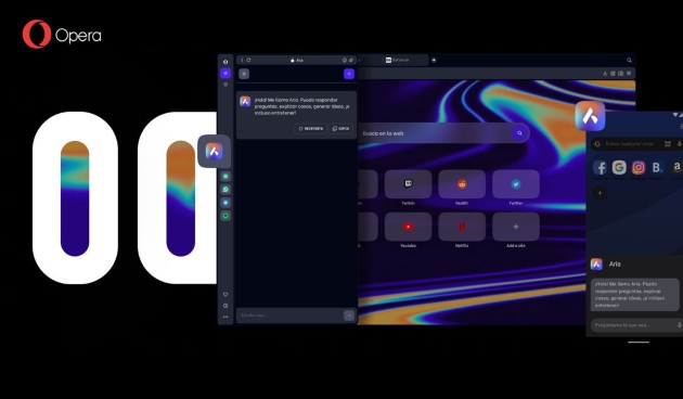 Rediseñado desde cero para marcar el comienzo de una nueva era de navegación basada en la inteligencia artificial, Opera One es el primer navegador que incorpora una IA integrada, Aria. Se puede acceder a la IA del navegador Opera One a través de una nueva línea de comandos, así como desde la barra lateral del navegador. Ofrece acceso gratuito a una solución líder basada en GPT junto con información actualizada de la web.