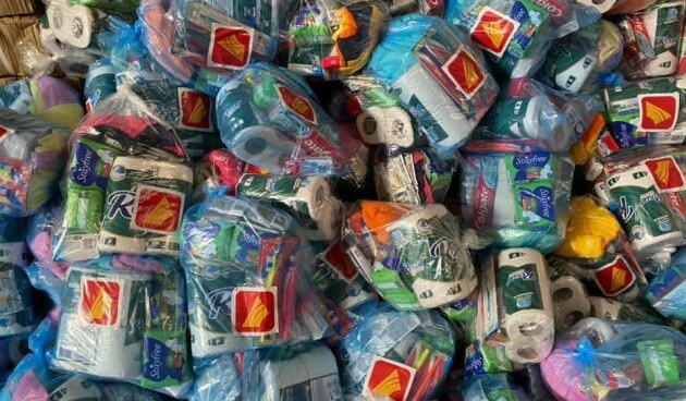 Las bolsas contiene comida y artículos de higiene, para que puedan alimentarse y sobre todo seguir con las medidas de higiene recomendadas para evitar contagios.