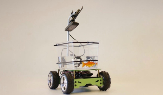 Ese vehículo contiene una cámara que detecta los movimientos del pez y envía esa información a un algoritmo. A través de un diminuto ordenador, el movimiento, la orientación y la localización del pez, se traducen en instrucciones para las ruedas del vehículo.