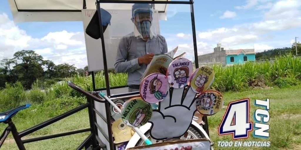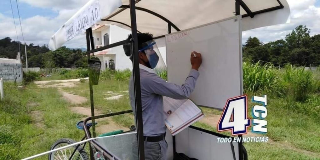 Un triciclo modificado con un pizarron para brindar sus clases fue la forma ingeniosa que desarrolló para continuar aportando en el desarrollo de los niños de Santa Cruz del Quiché.