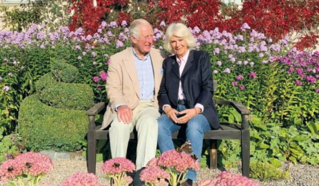 El príncipe Carlos, el heredero al trono de 72 años, seleccionó el miércoles una imagen suya con su esposa Camila sentados en un banco en el jardín de su casa en Birkhall, Escocia, para su tarjeta de Navidad.