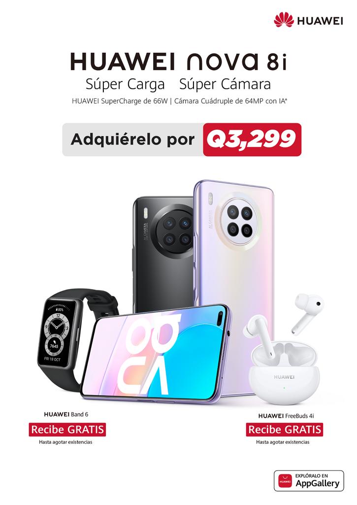 Aprovecha las promociones y regalos que incluye su precio de introducción (HUAWEI Band 6 y HUAWEI FreeBuds 4i, hasta que duren existencias). Encuéntralo disponible en distribuidores autorizados en color Azul y en Tiendas Claro en colores Negro y Silver.