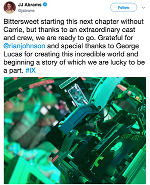 El director J.J. Abrams muestra escena de set de Episodio IX