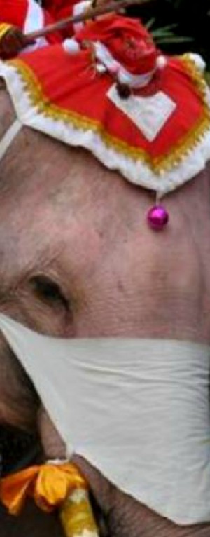 Papá Noel viaja en elefante y regala mascarillas