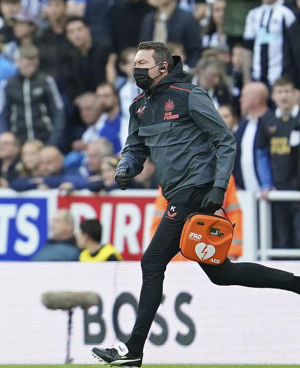 Reguilón y Dier ayudan a un aficionado del Newcastle