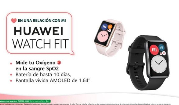 - Cuida de tu salud a cada paso que das con un smartwatch como el HUAWEI WATCH FIT, que registra desde frecuencia cardiaca y hasta tus niveles de saturación en la sangre (SpO2).