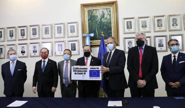 Este lunes se hizo efectiva la entrega de equipo médico donado por la Unión Europea hacia el mandatario Alejandro Giammattei que ayudará a detectar casos de personas portadoras de coronavirus.